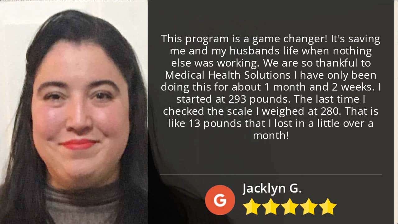 Jacklyn’s story is not uncommon. Like many, she faced significant challenges in her weight loss journey, trying various methods with little to no success. Her breakthrough came with the support and guidance of Medical Health Solutions, where she was introduced to semaglutide. Jacklyn experienced a remarkable change in just over a month. Her enthusiasm is palpable in her own words: “This program is a game changer! It’s saving my life and my husband’s life when nothing else was working. We are so thankful to Medical Health Solutions. I have only been doing this for about one month and two weeks. I started at 293 pounds. The last time I checked the scale, I weighed 280 pounds.”